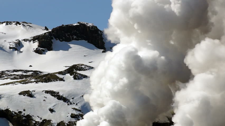 Steam hisses continuously and a person speaks while the wind blows