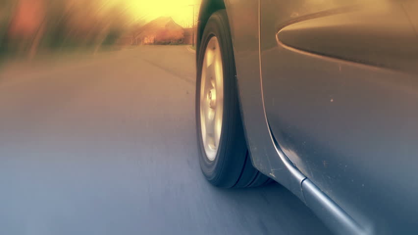 Motor running and revving with squealing tires then car fading in the distance