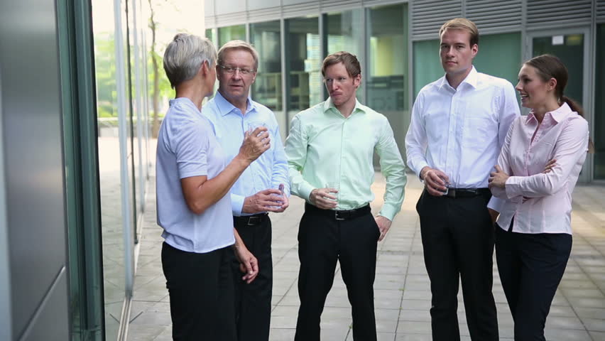 Truck running people speaking